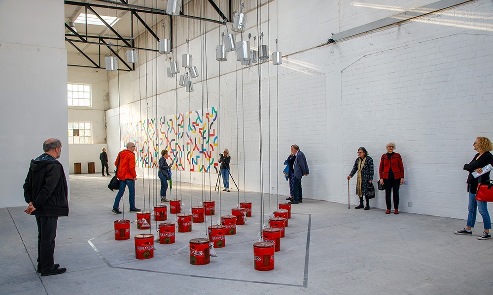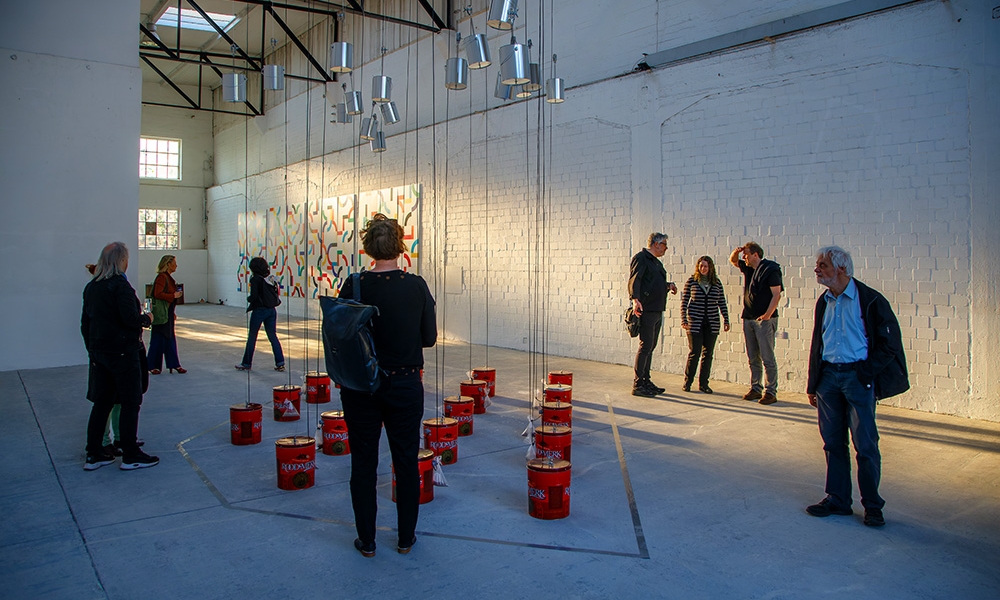COFFEE TIME und EIGHT DOUBLE SUDOKUS ist die erste Einzelausstellung mit Werken von Paul Panhuysen post mortem. Das münsterlandweite Klangkunstfestival SOUNDSEEING präsentiert den Pionier multimedialer Klangkunst vom 12.05. bis 04.06.23 in der Ausstellungshalle am Hawerkamp, dem unverwechselbar authentischen Kulturquartier Münster. Paul Panhuysen wurde seit den 1960er Jahren beeinflusst durch die internationale Fluxus-Bewegung. Bereits 1989 wurde eine seiner spektakulären Langsaiten-Installationen an der Rückseite des cuba in Münster gezeigt. Eine Auswahl der speziell in der Ausstellungshalle am Hawerkamp realisierbaren Arbeiten haben wir mit seiner Witwe Hélène Panhuysen getroffen. Die Ausstellung seiner auch heute noch aktuellen und einflussreichen Arbeiten wird vom Panhuysen-Estate unterstützt und konnte mit Hilfe des ZKM – zentrum für kunst und medien karlsruhe realisiert werden.