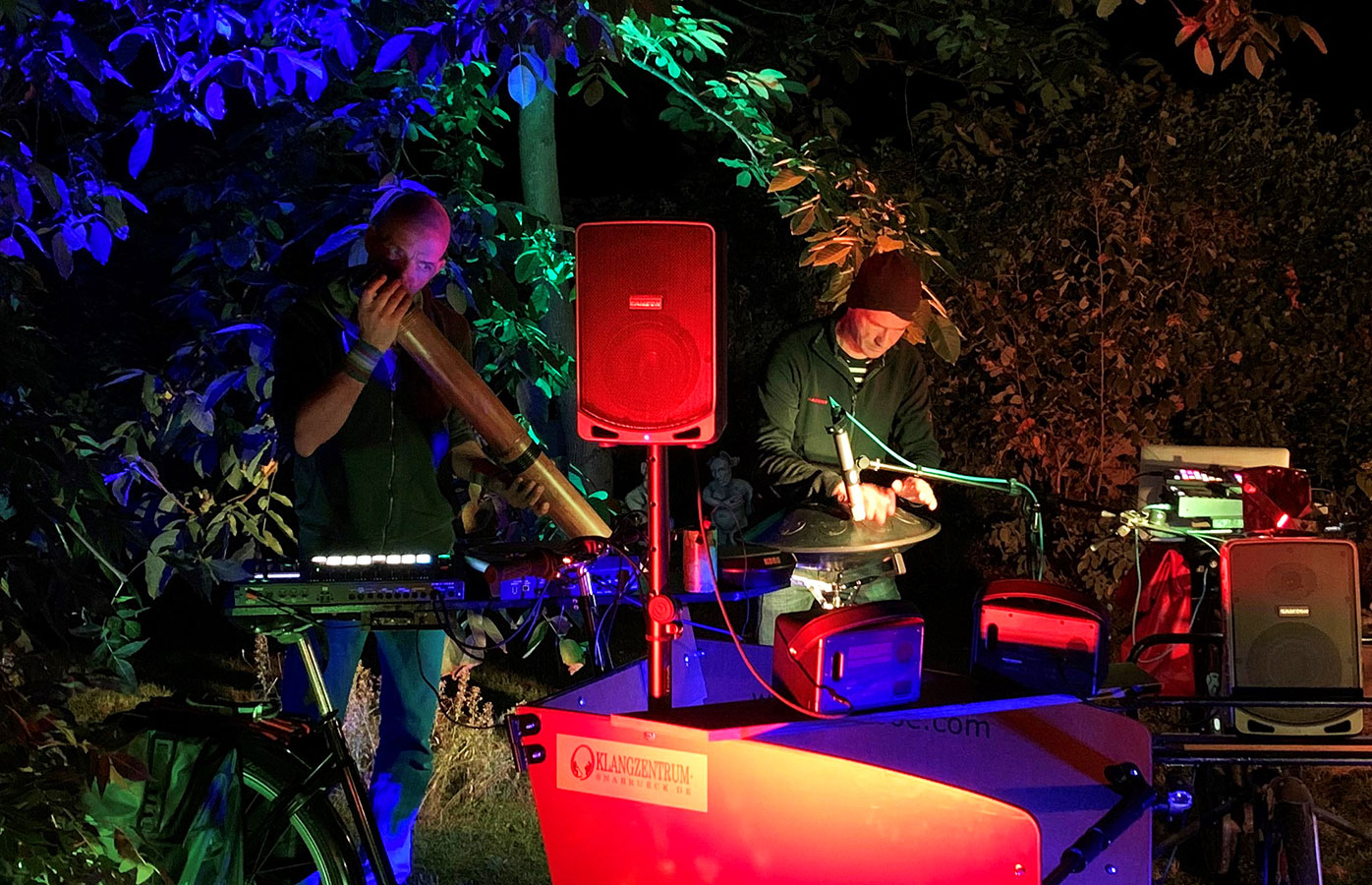 Die beiden Klangkünstler Jörg Kerll, Chi Gong Lehrer, Musiker sowie Klangmasseur in eigener Praxis im Klangzentrum Osnabrück, und Hilmar Hajek, Orchestermusiker im Osnabrücker Sinfonieorchester sowie Komponist für elektronische Musik, musizieren seit 2001 als KlangDuo. In verschiedenen Formaten verbinden die Künstler elektronische und akustische Klänge im Raum und nehmen die Zuschauenden mit auf eine Reise.