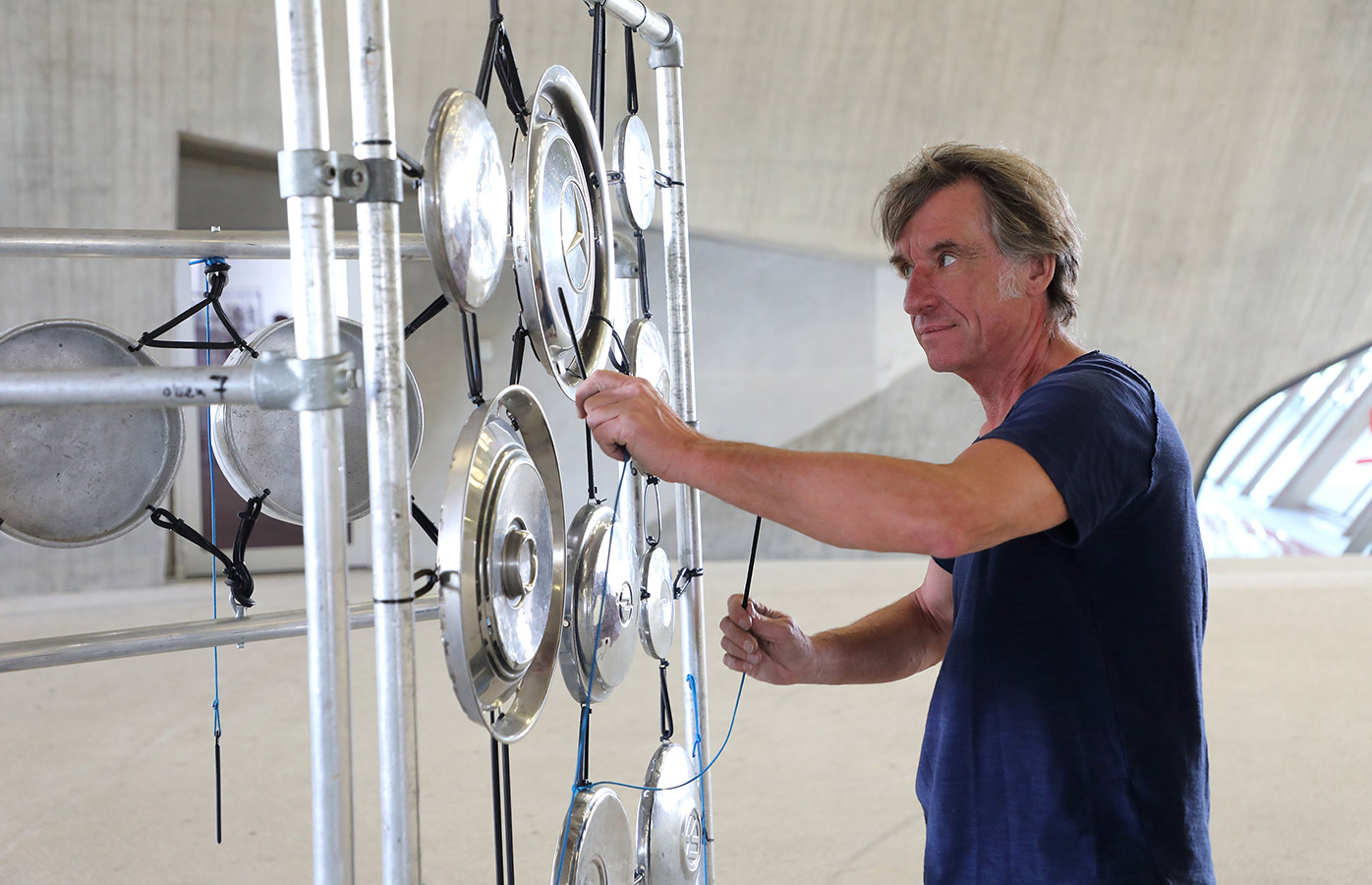 Stephan Froleyks (D) arbeitet international als Komponist, Interpret und Erfinder neuartiger Instrumente. Er erhielt mehrfach Stipendien und Kunstpreise, seine Kompositionen, Installationen, Hörstücke, multimedialen Arbeiten und Theatermusiken entstanden u.a. als Auftragswerke für WDR, Radio Bremen und das Deutschlandradio. Stephan Froleyks ist Professor für Schlagzeug und Musik anderer Kulturen an der Musikhochschule in Münster und Kurator von Musik- und Klangkunstfestivals.