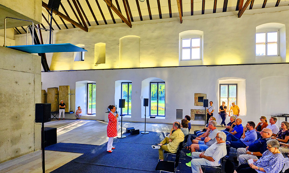 Konflikte um Zuwanderung, eskalierende Wut und Ängste – die Audioinstallation »Der Absprung« versetzt die Besucher mitten hinein in eine Atmosphäre von Zerrissenheit und Lagerbildung. In einem mit hochkarätigen Sprechern (Fabian Hinrichs, Peter Kurth u.a.) besetzten Klangbild aus 20 Lautsprechern konnte das Publikum an gleich 3 Kunstorten jeweils ca. 60 Minuten lang ein vielstimmiges Panorama der aktuellen gesellschaftlichen Fliehkräfte erleben: auf dem Platz des Westfälischen Friedens in Münster, im DA, Kunsthaus Kloster Gravenhorst, Hörstel und im kubaai – Kulturquartier Bocholt. Fotos: Steffi Herrmann (4), Michael Jezierny (3), Katharina Stockmann, LWL (3)