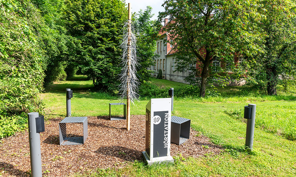 Danbi Jeung, Anahita Ghasemi Nasab, Juan Bermudez, Christopher Dahm, Stefan g. Fricke, Wingel Mendoza und Meike Borchers* entwickelten 2021 während eines Creative Camps ortspezifische SOUND ART-Arbeiten für das Kulturgut Haus Nottbeck. Inspiriert vom Literaturmuseum entstanden Klangkunst-Objekte mit Sprache.