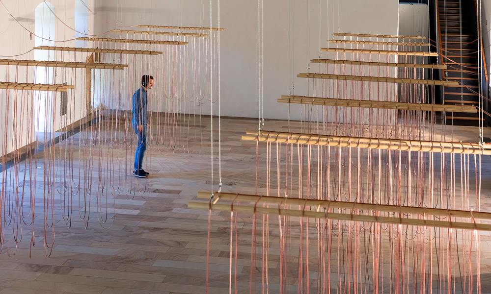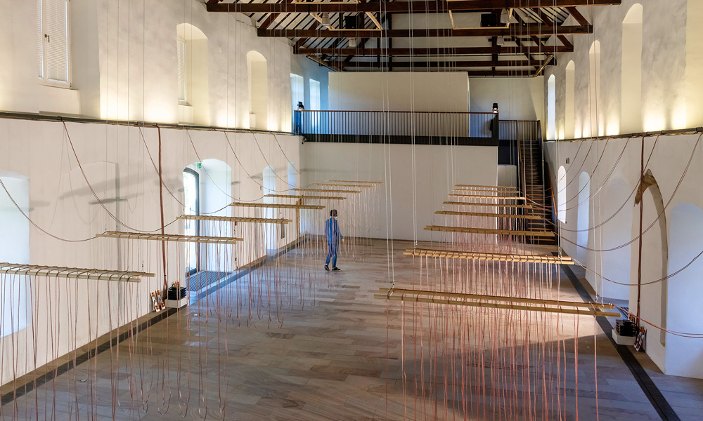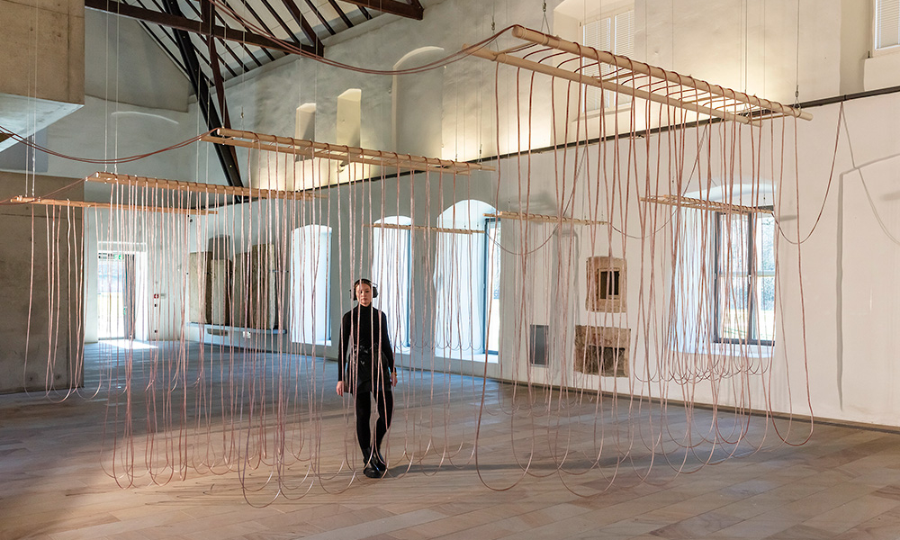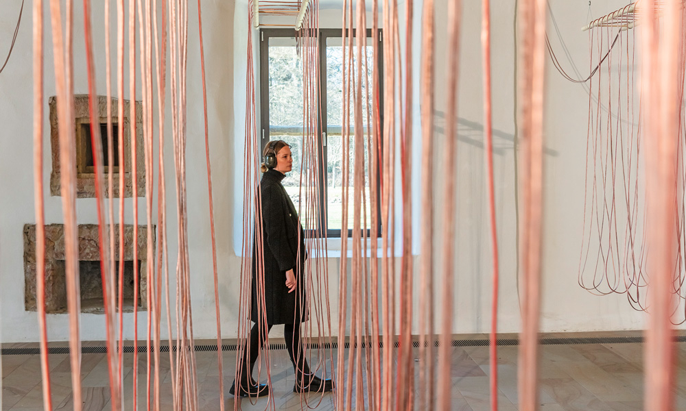 Mit der Klangkunstausstellung WEAVING startete das münsterlandweite Klangkunstfestival SOUNDSEEING 2021 im DA, Kunsthaus Kloster Gravenhorst. WEAVING lautete der Titel der Sound-Installation von Christina Kubisch im großen Saal des DA. Außerdem zeigte die renommierte Klangkünstlerin im Remter ihre Arbeiten „FESTPLATTEN“ – Grabsteinplatten, UV-Licht und fluoreszierendes Pigment –, die Sonagramme „Analyzing Silence“ im Studio und ihre Installation „Silent exercizes“ im Gewölbekeller des ehemaligen Klosters.