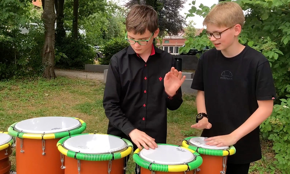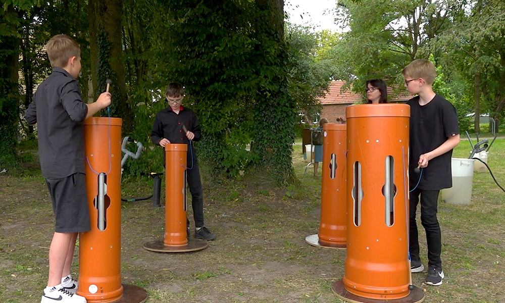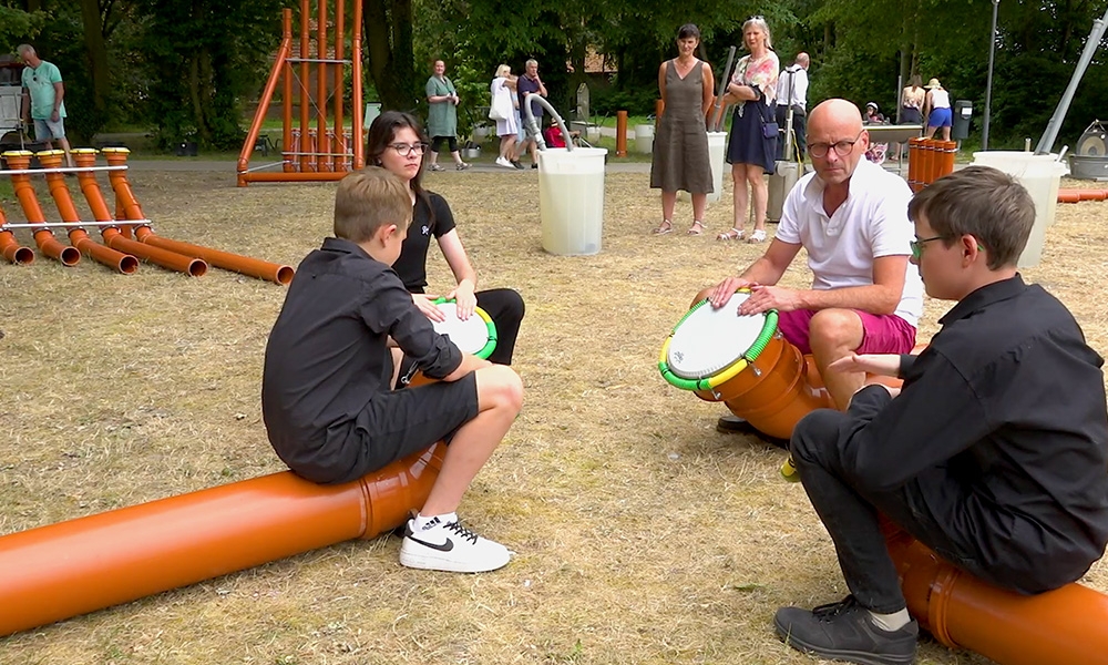 Trommeln, Monster-Flöten, Wasserinstrumente und Röhrenglocken – Klangkunst zum Mitmachen ließen sich beim Klangkunst-Picknick von Landesmusikakademie NRW und Künstlerdorf Schöppingen mit der ganzen Familie erleben. In den Gebäuden des Künstlerdorfs stellten aktuelle und ehemalige Stipendiat:innen klangkünstlerisch inspirierte Werke vor: Aurélie Pertusot mit „La Boucle est bouclée #2“ und der Performance „Erosion“ (1-3), Sophia Bauer – „A Conspiration: Breathing Choir“ (7) und Hanna Melnykova, die mit „Sounds of the Universe“ (8-10) Klang und Fotografie auf neuartige Weise verbindet. Die Musik-Spielaktionen „KlangKanal“ und „Wasser-Orchester“ (4-6) von Michael Bradke richten sich an Menschen ab 2 Jahren bis ins hohe Alter und schufen eine musikalische Open-Air-Landschaft auf dem Gelände des Künstlerdorfs. Mit der Mobilen Musikwerkstatt Münsterland konnten sich alle Generationen im Instrumentenbau aus Alltagsmaterialien erproben und die Instrumente direkt ausprobieren. Klangerfrischung zwischendurch bietet das Percussion-Quartett Altenberge (11-12) mit groovigen Stücken. Picknickkörbe standen bereit…